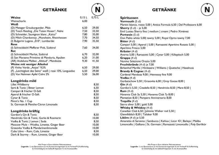 Speisekarte:
